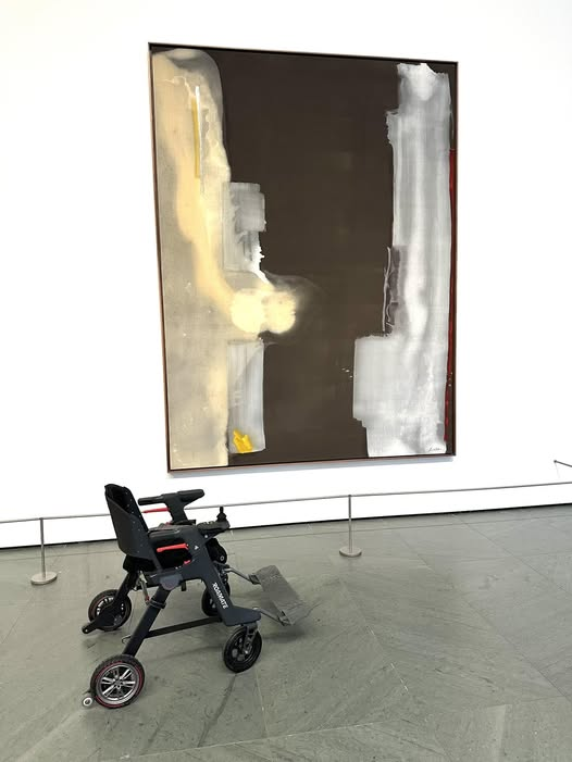 This weekend I took my Roamate to New York City for a family vacation. Here is a photo of it in the Museum of Modern Art where I happily spent three hours rolling through the galleries, enjoying the art! Always before, my time in museums was limited by how long I could walk or stand. I can’t tell you how happy I am to have this option. Furthermore, it has been a snap to take it in taxis!